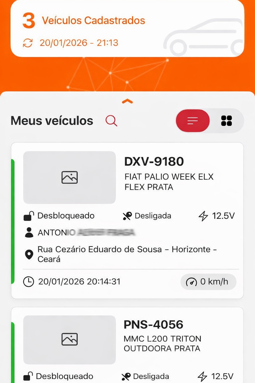Você acompanha tudo com facilidade: localização, eventos e histórico de rotas.